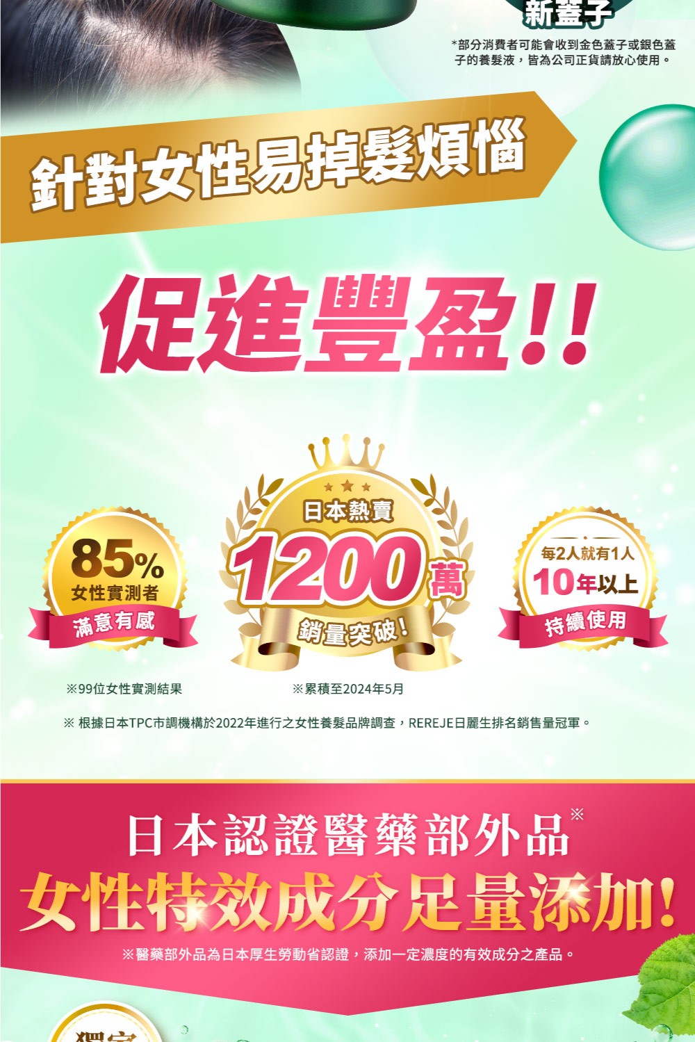 4分鐘前【日麗生髮液】女人我最大推薦★小姐不熙娣推薦★健髮小綠瓶/豐盈秀髮/強健髮根)有效滋養頭皮毛穴,增強髮質的同時可以促進頭髮再生,使用28天,效果看得見 - 【優惠加碼!滋養頭皮 均價283】買三送三6入组-僅需NT$1698