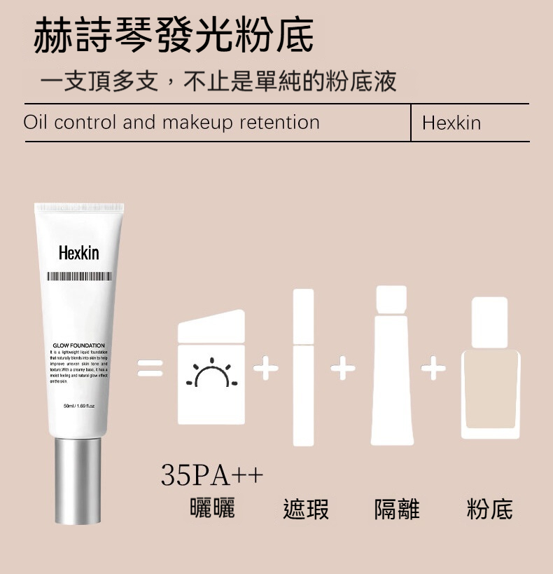 12分鐘前Hexkin赫詩琴水光素顏霜✨發光回頭霜4合一粉底液✨ 🚫不卡粉不卡紋 打造偽素顏!自然光澤感 一支包含防曬-隔離-遮瑕-柔膚 質地超級輕薄易推 多次疊加也不厚重 - 【女神超值優惠 】買三送三 6入組 -NT$1598