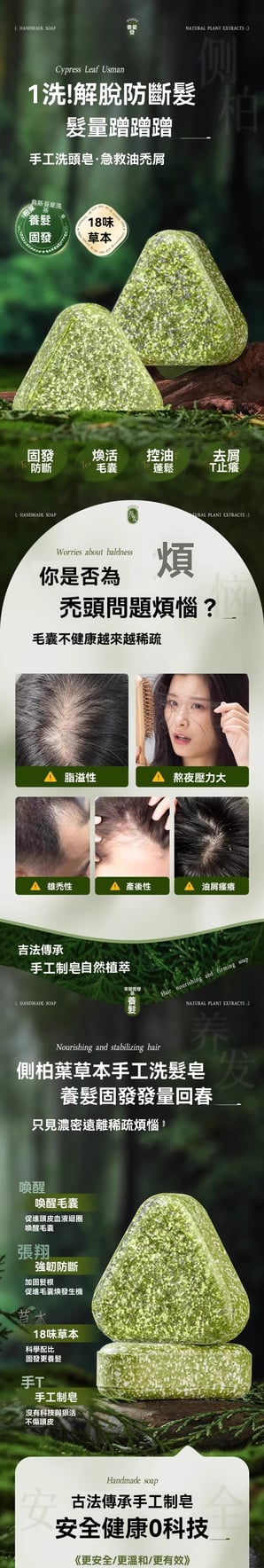 12分鐘前【鳥斯曼生髮皂】天然植萃·強韌髮根·告別掉髮困擾 無任何化學成分,敏弱頭皮都可使用,有效滋養頭皮毛穴,增強髮質的同時可以促進頭髮再生,使用2-3個月,效果看得見 - 【限時下殺! 全家分享組 鞏固套餐 均價169】買五送五10入组-僅需NT$1698